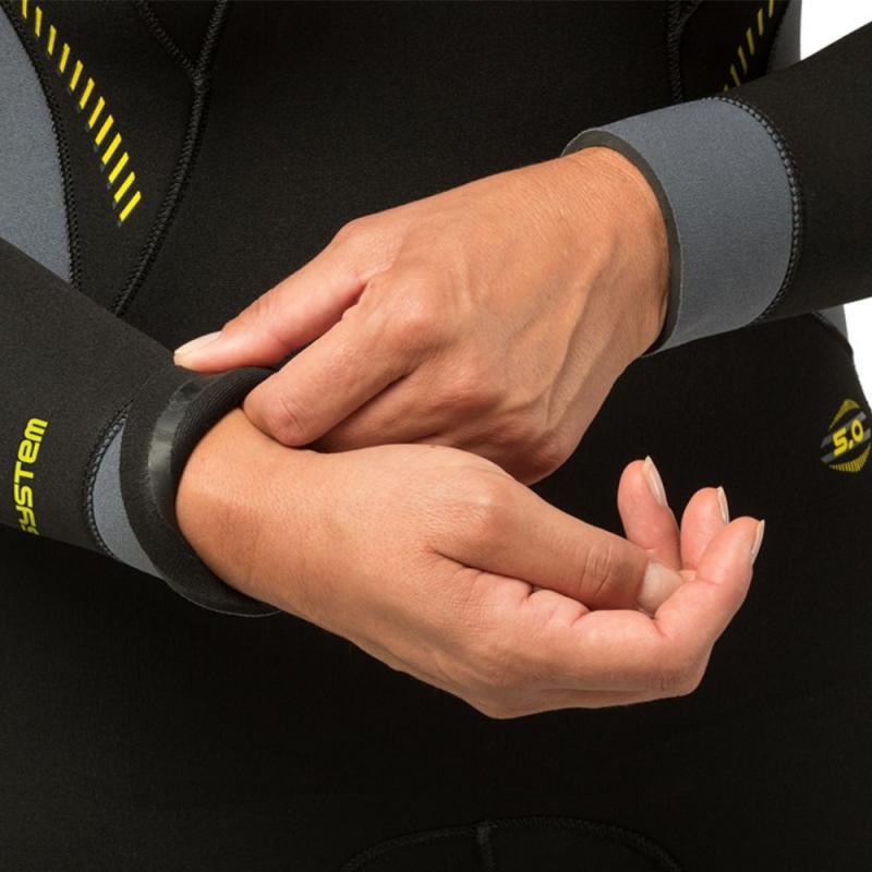 - Handgelenke und Fußknöchel mit "Water Stop"-System / wasserdichten Dichtungen.
