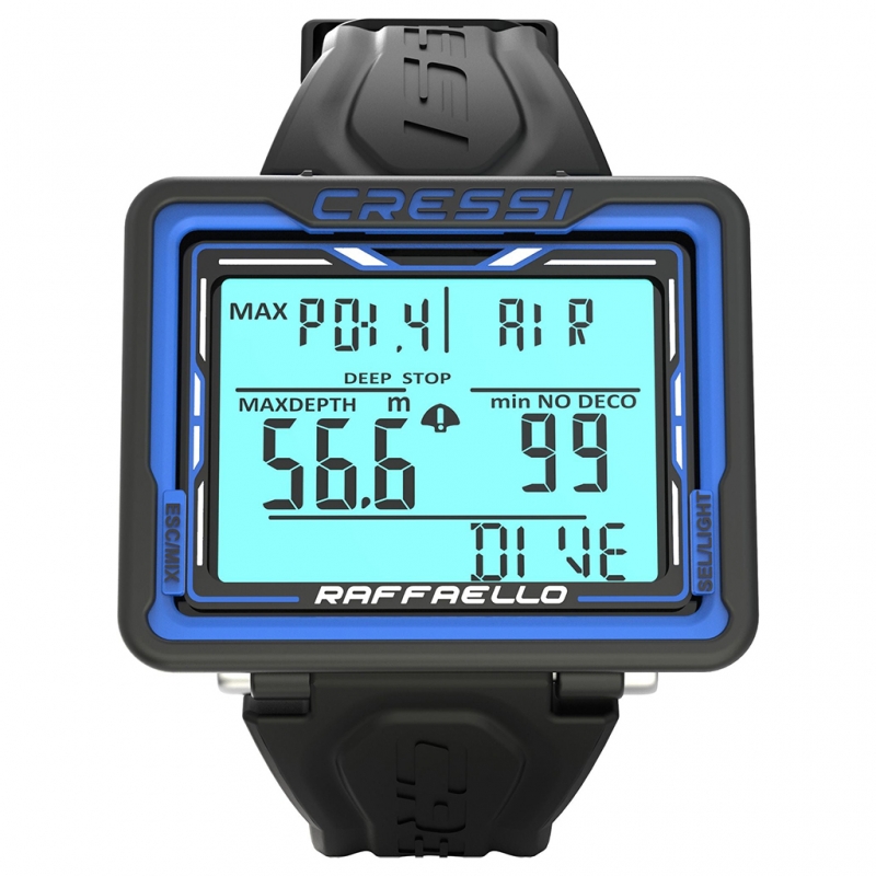 Mit dem Cressi Tauchcomputer Raffaello (black/blue) an deinem Handgelenk bist du für jedes Abenteuer unter Wasser bestens gerüstet.