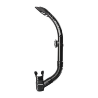 Ein Ausblasventil im Mundstückbereich erleichtert das Ausblasen. Der flexible Faltenschlauch hängt bei Nichtgebrauch einfach nach unten und behindert nicht beim Tauchen.