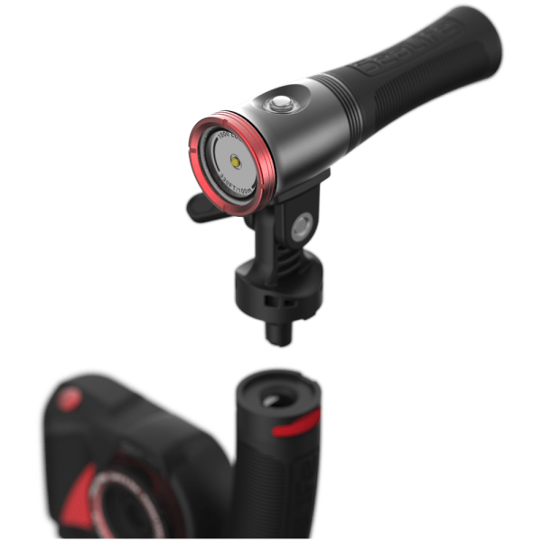 Mit 1000 Lumen bietet die kompakte Sea Dragon Mini 1000F Tauch- und Fotolampe enorme Helligkeit und mit 130° einen weiten Lichtkegel. Die Lampe kann sowohl in der Hand gehalten als auch mit dem mitgelieferten Y-S Adapter an einer Kamerahalterung oder einem Flex Connect Arm befestigt werden.