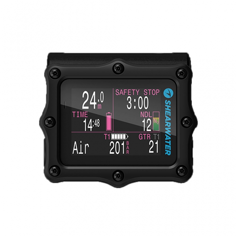 Die Luftintegration mit bis zu vier Shearwater-Sendern lässt Spielraum, um von einem ersten Computer zu einer leistungsstarken, bewährten, fortschrittlichen technischen Tauchlösung zu wachsen. Dies wird mit der bewährten und leicht zu findenden, vom Benutzer austauschbaren einzelnen AA-Batterie und dem vertrauten ergonomischen, kompakten Formfaktor geliefert.