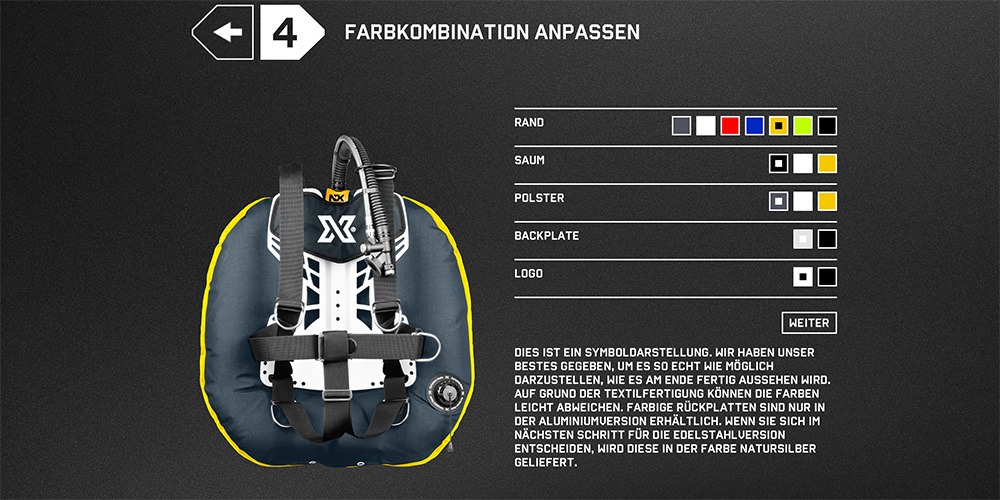 Mit dem XDEEP Konfigurator hast du unzählige Möglichkeiten, dein Tariersystem individuell anzupassen. Beginnend mit dem Grundmodell kannst du Größen, Farben, Inflator, Backplate, D-Ringe, Zubehör und vieles mehr ganz nach deinen Wünschen konfigurieren. Der Preis deiner Zusammenstellung wird dir dabei jederzeit angezeigt, sodass du die endgültigen Kosten stets im Blick behältst.